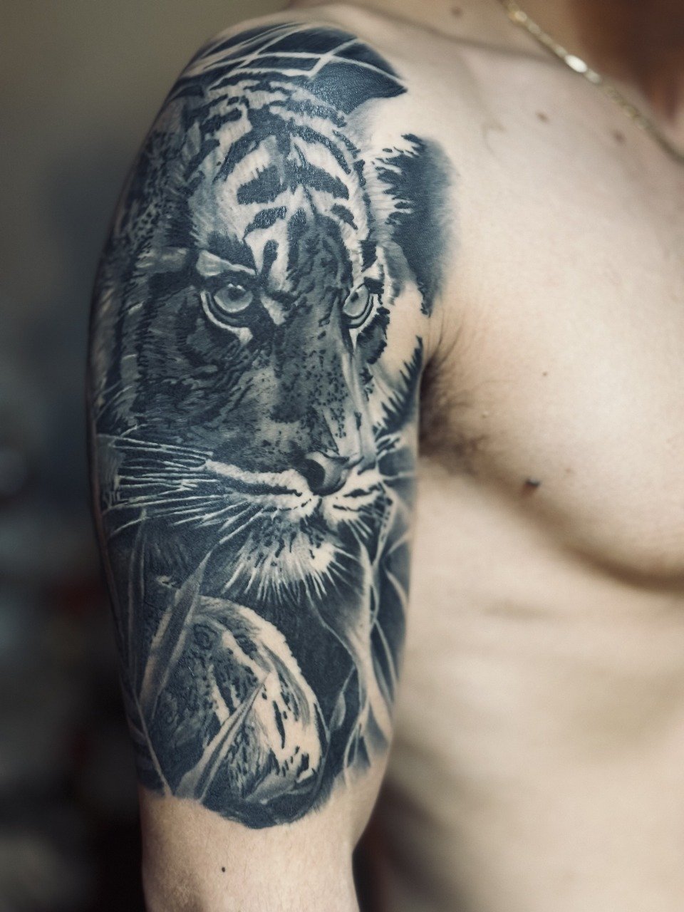 Black-and-grey tattoos featuring realistic shading, depth, and timeless artistry for stunning visual impact.