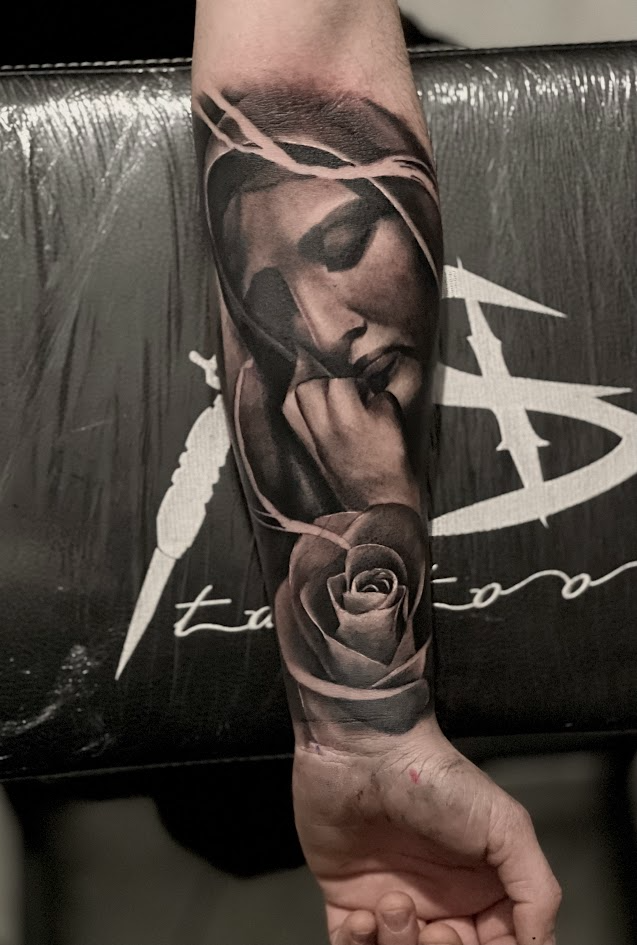 What inspires me most are tattoos that carry a story. Drawing from my background and studies in human psychology, I see each tattoo as more than just art — it’s a collaboration, a process of co-creation that transforms personal experiences into something lasting and meaningful.